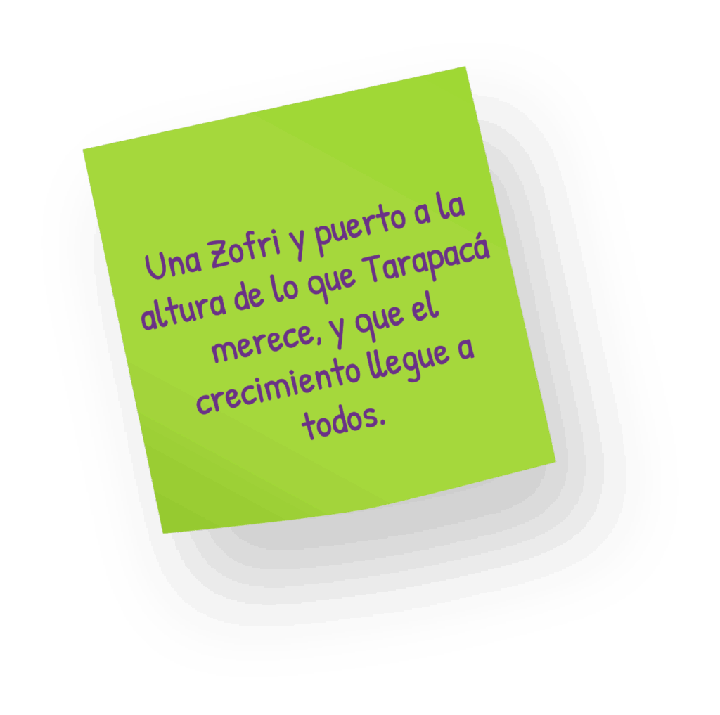 Un sueldo vital de $750.000, empleo formal para jóvenes y mujeres, apoyo a PYMES y una Zona Franca moderna que proteja Tarapacá y su medioambiente.